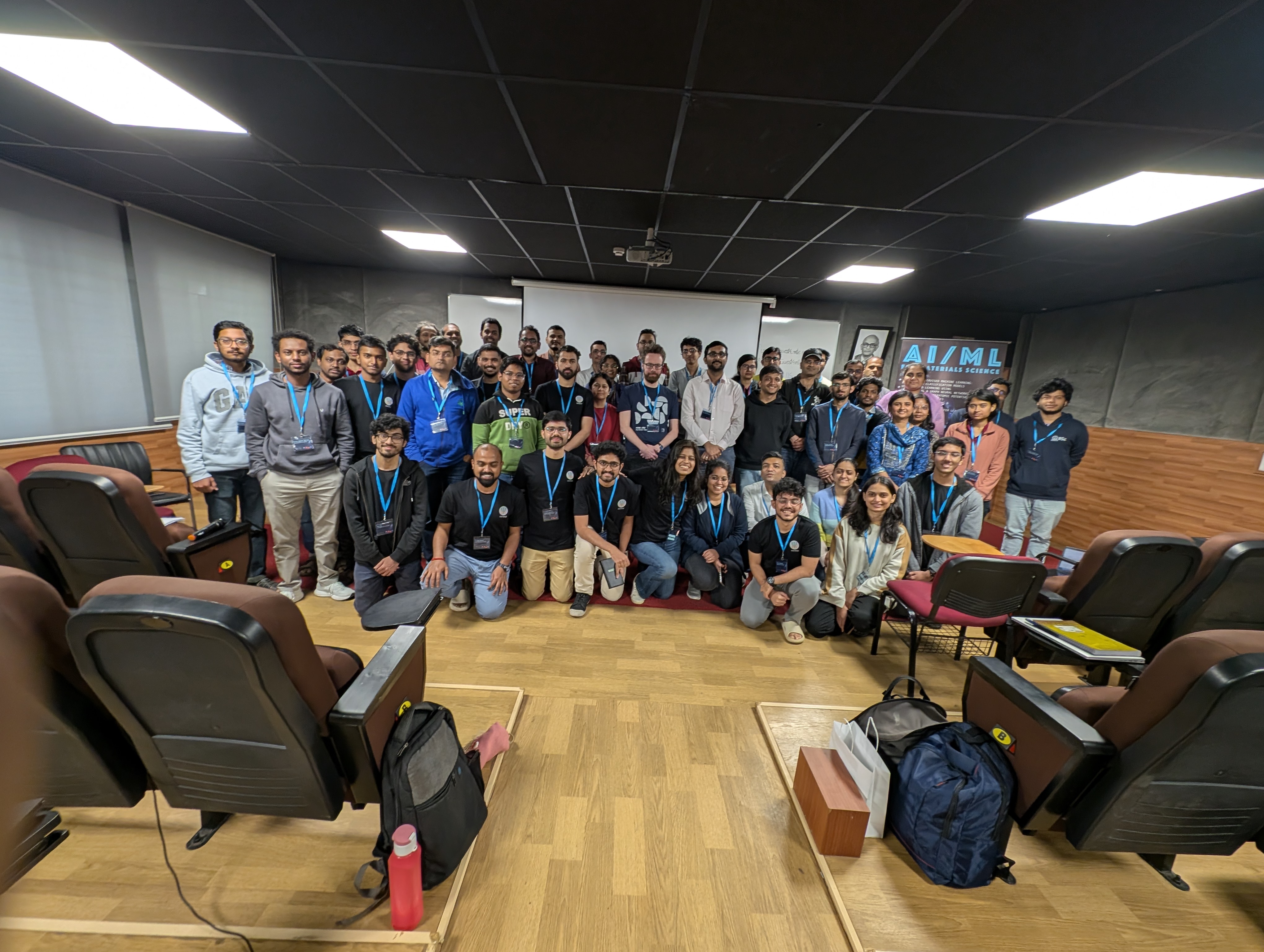 The SAI-Mat group, in association with Keith Butler at the University College London, successfully organized a two day workshop on ‘AI/ML for Materials’ at the Department of Materials Engineering, Indian Institute of Science. Spread over January 7 and 8, 2025, the workshop was attended by over 35 attendees (who were selected from over 220 applicants) from various academic institutions and industries across India. The workshop was completely free for all participants, including food during the event, with generous sponsorship from The Royal Society and the UK Research and Innovation.
