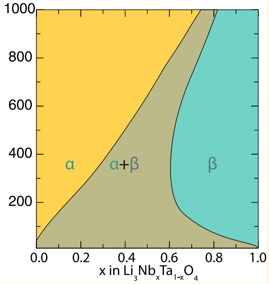 Lithium niobate-tantalate mixtures have garnered considerable interest for their ability to merge the desirable properties of both end members, enabling diverse high-value applications, such as high-performance faradaic capacitors, nonlinear optics, and protective coatings in rechargeable batteries. While numerous studies on the application of LiNbxTa1–xO3 exist, the phase behavior and properties of Li3NbxTa1–xO4 remain largely unexplored. In this work, we employ a multiscale approach that encompasses first-principles phonon calculations, cluster expansion, and Monte Carlo simulations to derive the temperature-composition phase diagram for Li3NbxTa1–xO4. Our findings reveal the critical role of vibrational entropy in accurately predicting phase stability, which promotes the solubility of Nb in Li3TaO4 while suppressing the miscibility of Ta in Li3NbO4. Additionally, we demonstrate that Nb/Ta mixing offers a promising avenue for tailoring the Li-ion conductivities of Li3NbxTa1–xO4. On the technical side, we demonstrated the importance of including vibrational entropy effects explicitly in Monte Carlo simulations dealing with multicomponent systems, beyond simple binary mixtures. On the application side, this study provides fundamental insights into the phase behavior and Li-ion transport properties of Li3NbxTa1–xO4, paving the way for its potential applications in energy storage and other fields.
